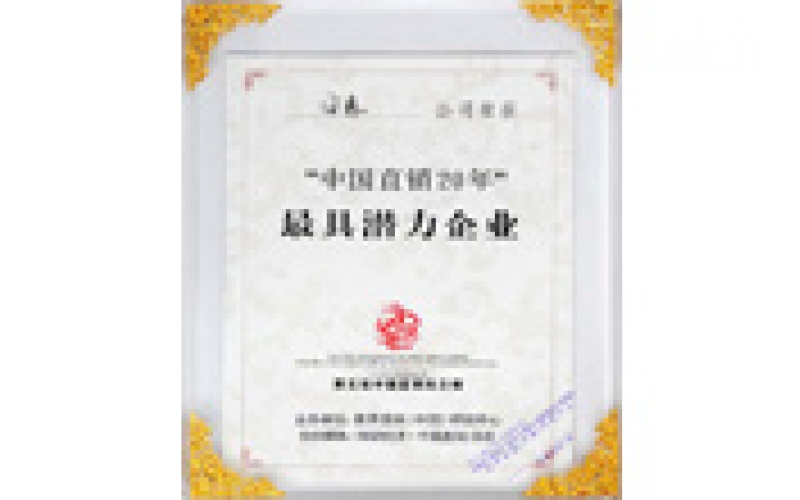 2009年12月2日,安惠公司獲“中國(guó)直銷(xiāo)20年”之最具潛力企業(yè)獎(jiǎng)。