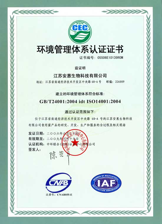 2006年6月20日,公司通過ISO14001環(huán)境管理體系認(rèn)證。