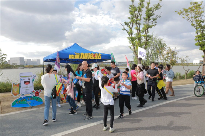 現場近450個家庭的近千名選手在一聲發令下,開始了環繞紫瑯湖的8.8公里的公益跑活動。安惠公司在活動沿途設立了能量加油站。安惠江海志愿者們為選手們送水,派發新品安惠牌靈芝孢子油番茄紅素軟膠囊體驗裝,為他們加油鼓勁。選手們也紛紛駐足休息,拍照留念。