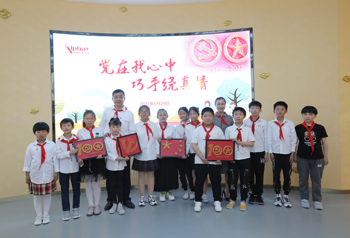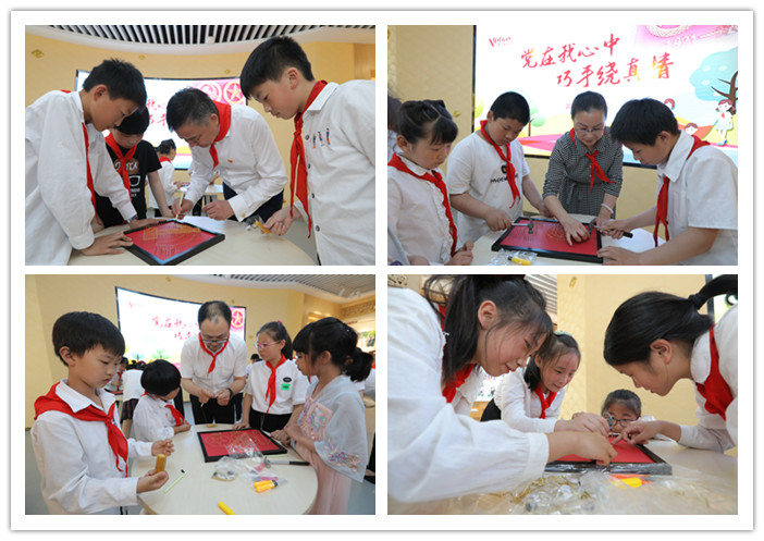 安惠江海志愿者還精心準備了“黨在我心中,巧手繞真情”的釘子繞線畫活動,用特殊的方式獻禮建黨100周年。陳惠董事長、陸漢萍副董事長、安惠江海志愿者陪同孩子們一起,用一個個釘子、一圈圈繞線做成黨旗、國旗、建黨100周年LOGO等,歌頌中國共產黨的光榮歷史和豐功偉績,表達偉大祖國繁榮昌盛的美好祝愿。
