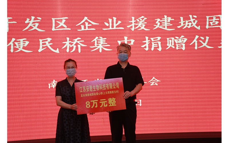 陜西省漢中市城固縣是南通開發區對口扶貧地區,為鞏固已取得的階段性協作成果,進一步助力鄉村振興,在已經援建城固縣山區7座便民橋的基礎上,今年再捐建12座便民橋。8月,開發區慈善會發出《關于定向捐贈漢中市城固縣山區便民橋建設征集函》,得到了廣大企業界的積極響應,短短3天時間共收到包括安惠公司在內的12家企業的定向捐贈回函。